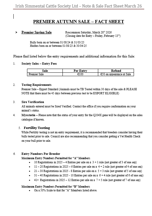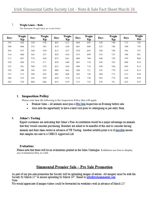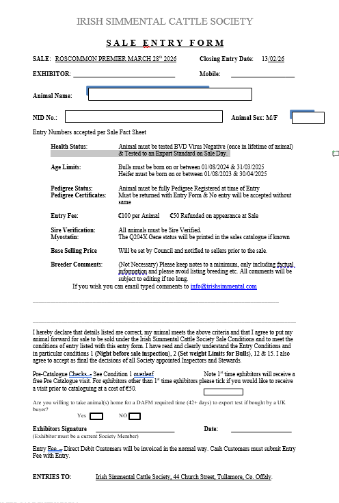 Please email info@irishsimmental.com